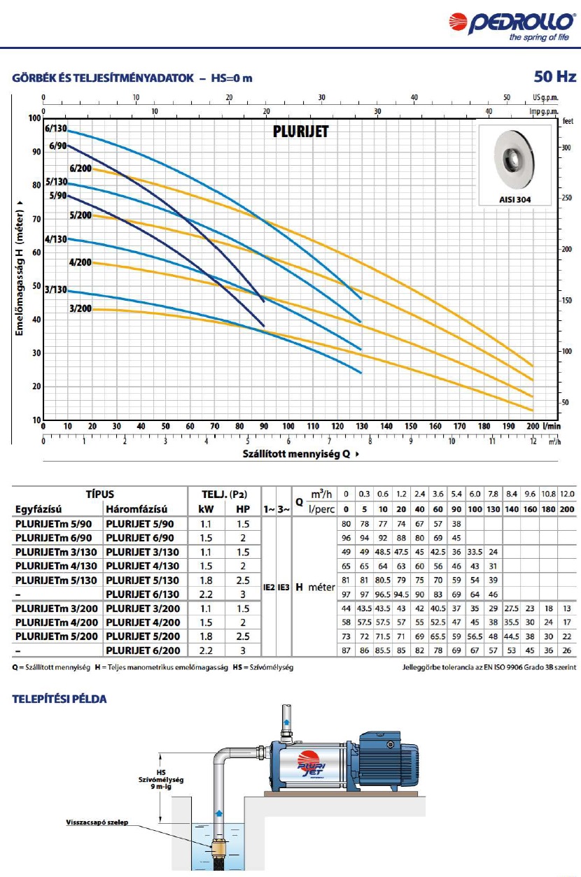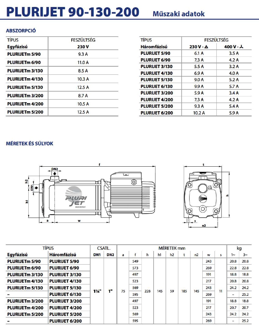 - Plurijet 200: Jellemzően 1,5 kW (2 LE) körüli teljesítmény.
