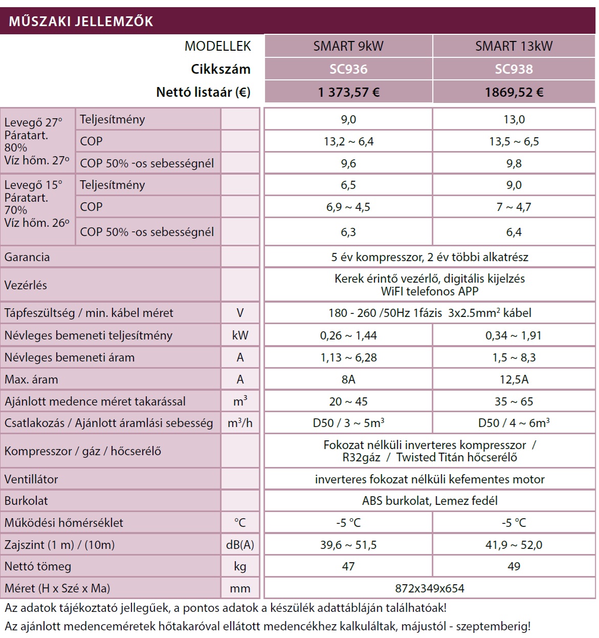 Műszaki adatok – AquaForte Smart Inverteres 9kW WIFI Hőszivattyú