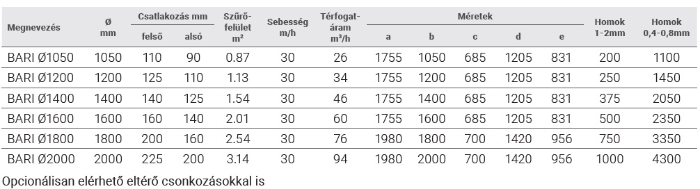BARI Ø1050 1m D110/D90 szűrőtartály 26 m3/h