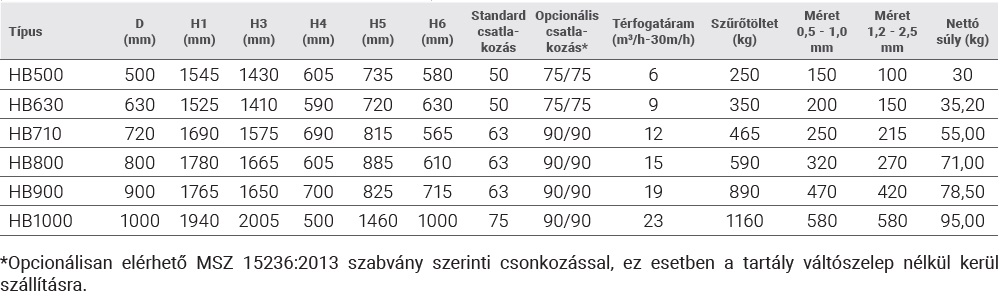 Műszaki adatok – GEMAS FHB Szűrőtartály