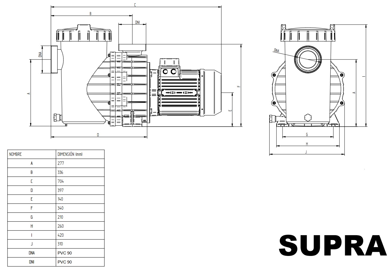 Rendkívül Magas Teljesítmény és Átfolyás: A Supra széria a nagy teljesítményre lett tervezve, ami biztosítja a medencevíz gyors és hatékony átforgatását még a legnagyobb medencék esetén is. Az optimális hidraulikai kialakításnak köszönhetően a szivattyú képes nagy mennyiségű vizet szállítani jelentős nyomás mellett, ideális homokszűrők meghajtására és egyéb medencetechnikai feladatok ellátására.