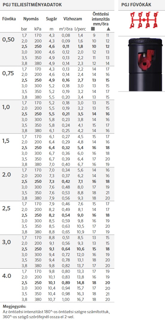 Fúvókák és teljesítmény (Hunter PGJ-04):