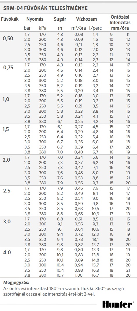 Fúvókák és teljesítmény (Hunter SRM-04):