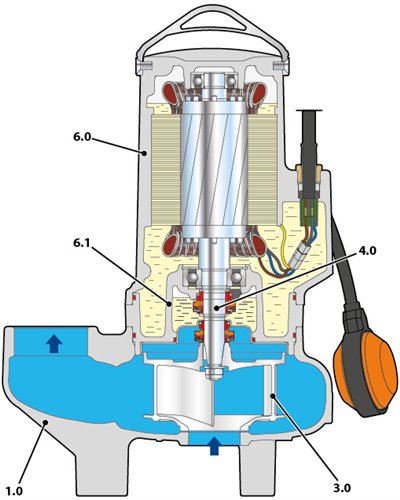 Robusztus és Tartós Anyagok: A szivattyúház strapabíró öntöttvasból készül, ami kiválóan ellenáll a mechanikai sérüléseknek, a korróziónak és az abrazív hatásoknak. A tengely rozsdamentes acélból (AISI 430 F) készült, a hosszú élettartam és a megbízhatóság érdekében. A duplatömítésű, olajkamrás tengelytömítés pedig hatékonyan védi a motort a víz bejutásától.