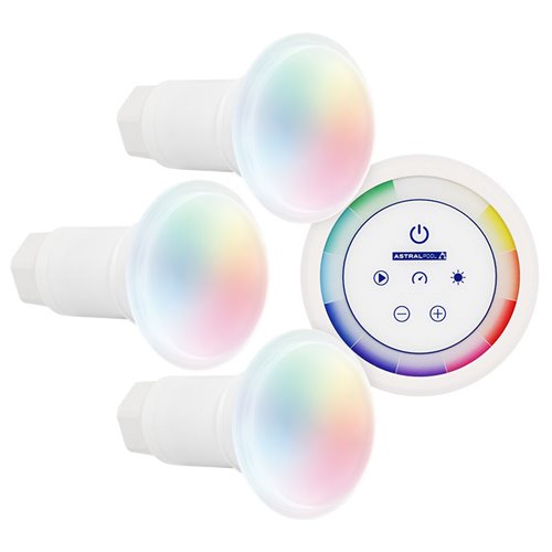 LumiPlus Flexi Plug&Play medencelámpa szett, 2000 lm, 12V AC, RGB. 3 db lámpa és 1 db távirányító.