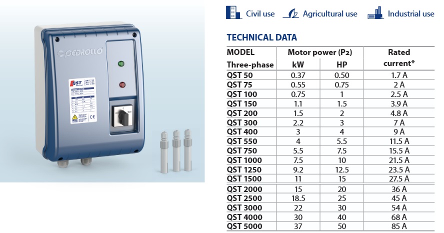 PEDROLLO QST Motorvédő – Professzionális Vezérlőpanel Búvárszivattyúkhoz